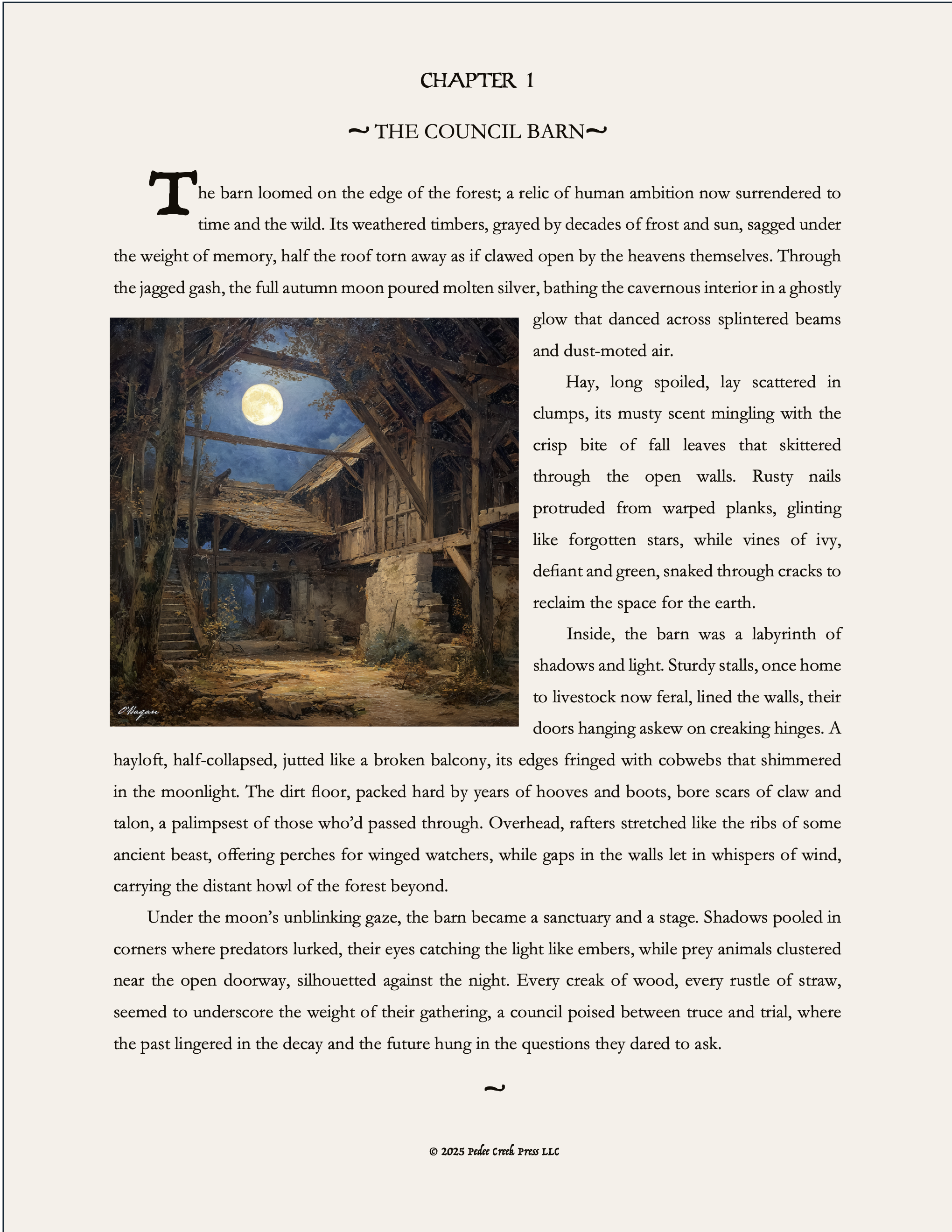 Next spring, step into the shadowed cathedral of a crumbling barn, where a truce older than the forest itself stands trial…and may not survive the night. Coming from B.R.O'Hagan in 2026, The Forest Keep, a novel. Here is a preview: